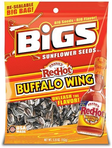 BIGS Sunflower Seeds are big seeds with big flavor! Packaged in a large, re-sealable bag, each bite is sure to taste as fresh as the first. BIGS Frank's RedHot Buffalo Wing Sunflower Seeds bring serious heat - that is, delicious buffalo flavor - to only the biggest, tastiest roasted seeds. BIGS Seeds: Always bigger. Always better.